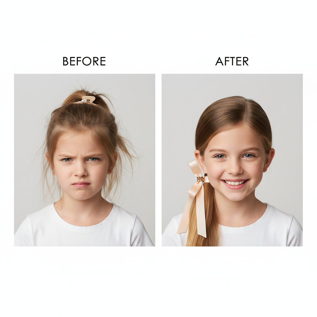 They stay secure through school, playtime, and parties — without pulling or damaging delicate hair.
